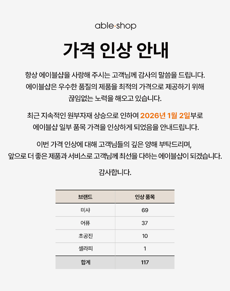 [미샤,어퓨,초공진,셀라피] 일부 품목 가격 인상 안내