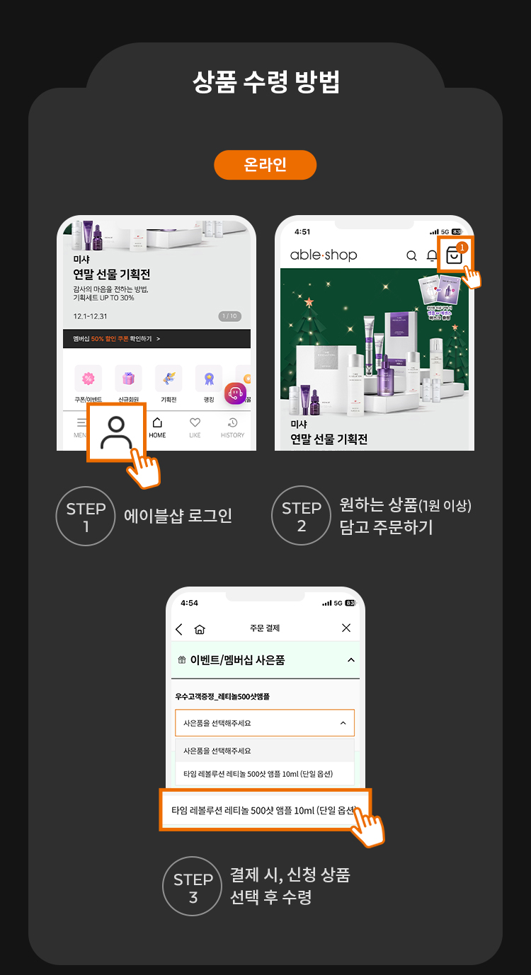 - 온라인몰: 로그인 후 결제 페이지에서 사용가능
