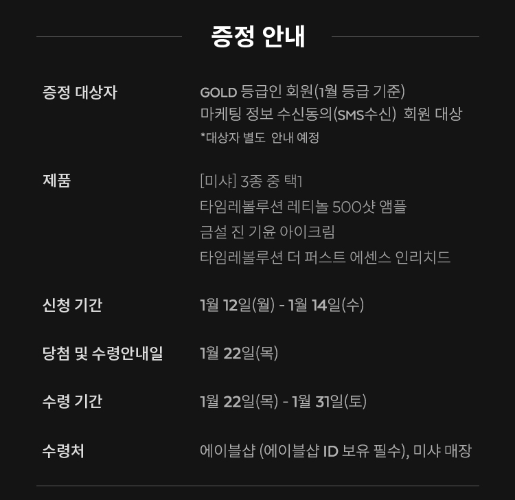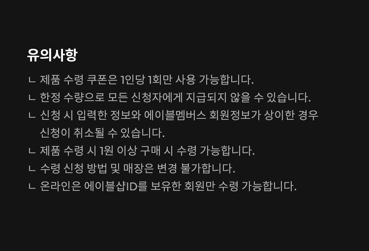 - 적립처: 눙크/미샤/어퓨 매장 또는 온라인 몰