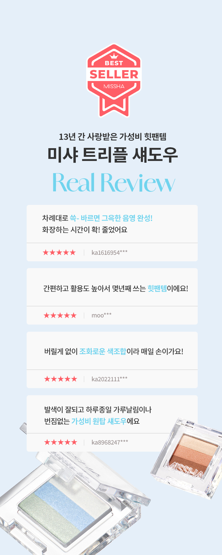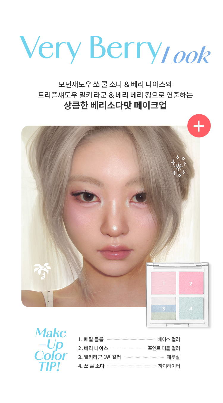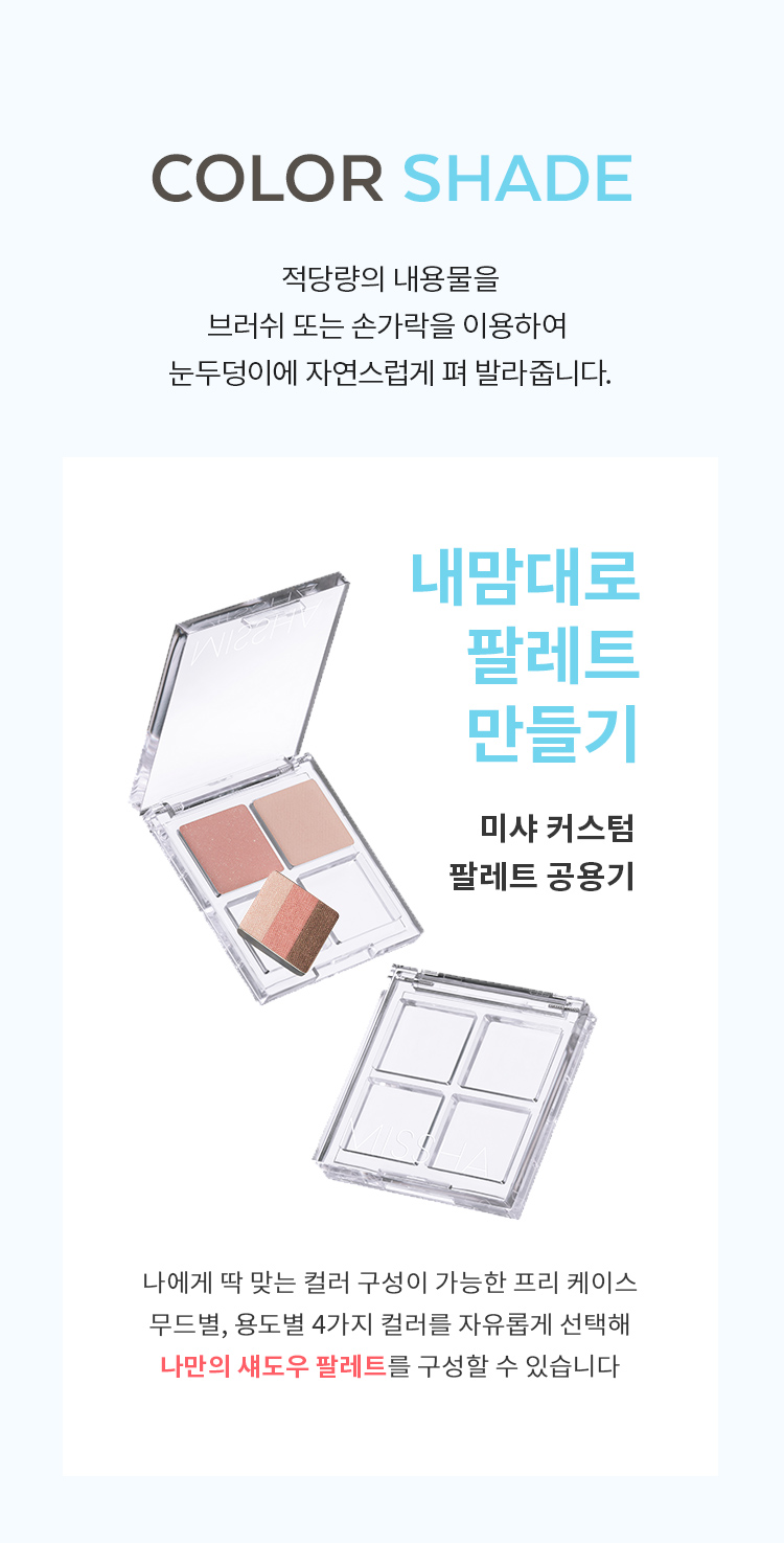 | 전성분 | [1호 브라우니 핑크 2g] 마이카,합성플루오르플로고파이트,티타늄디옥사이드,칼슘티타늄보로실리케이트,다이아이소스테아릴말레이트,옥수수전분,적색산화철,페닐트라이메티콘,미네랄오일,흑색산화철,칼슘소듐보로실리케이트,실리카,다이메티콘,마그네슘스테아레이트,다이펜타에리스리틸헥사하이드록시스테아레이트/헥사스테아레이트/헥사로지네이트,틴옥사이드,비스머스옥시클로라이드,마이크로크리스탈린왁스,다이메티콘/비닐다이메티콘크로스폴리머,클로페네신,카프릴릴글라이콜,에틸헥실글리세린,황색산화철,카민,정제수,적색226호,적색201호,아르간커넬오일,코코넛야자오일,알로에베라잎추출물,자수정가루,부틸렌글라이콜,메티콘,진주가루,글리세린,루비가루,사파이어가루,1,2-헥산다이올,하이드롤라이즈드콜라겐,페녹시에탄올,녹차추출물,다이아몬드가루,에델바이스추출물,마돈나백합꽃추출물,나팔수선화추출물,프렌치로즈꽃추출물,붉은토끼풀꽃추출물 [3호 모카 베이지 2g] 마이카,합성플루오르플로고파이트,티타늄디옥사이드,적색산화철,다이아이소스테아릴말레이트,옥수수전분,페닐트라이메티콘,미네랄오일,흑색산화철,다이메티콘,탤크,실리카,틴옥사이드,다이펜타에리스리틸헥사하이드록시스테아레이트/헥사스테아레이트/헥사로지네이트,황색산화철,마이크로크리스탈린왁스,다이메티콘/비닐다이메티콘크로스폴리머,클로페네신,정제수,카프릴릴글라이콜,마그네슘스테아레이트,에틸헥실글리세린,아르간커넬오일,적색202호,코코넛야자오일,알로에베라잎추출물,자수정가루,부틸렌글라이콜,진주가루,글리세린,루비가루,사파이어가루,1,2-헥산다이올,하이드롤라이즈드콜라겐,페녹시에탄올,녹차추출물,다이아몬드가루,에델바이스추출물,마돈나백합꽃추출물,나팔수선화추출물,프렌치로즈꽃추출물,붉은토끼풀꽃추출물 [4호 초콜릿 브라운 2g] 마이카(CI 77019), 합성플루오르플로고파이트, 티타늄디옥사이드(CI 77891), 디이소스테아릴말레이트, 흑색산화철(CI 77499), 적색산화철(CI 77491), 칼슘티타늄보로실리케이트, 옥수수전분, 페닐트리메치콘, 미네랄오일, 실리카, 디펜타에리스리틸헥사하이드록시스테아레이트/헥사스테아레이트/헥사로지네이트, 알로에베라잎추출물, 아르간트리커넬오일, 녹차추출물, 코코넛오일, 하이드롤라이즈드콜라겐, 진주가루, 에델바이스추출물, 마돈나백합꽃추출물, 나팔수선화추출물, 프렌치로즈꽃추출물, 붉은토끼풀추출물, 디메치콘, 마그네슘스테아레이트, 마이크로크리스탈린왁스, 황색산화철(CI 77492), 틴옥사이드(CI 77861), 클로페네신, 디메치콘/비닐디메치콘크로스폴리머, 카프릴릴글라이콜, 에칠헥실글리세린, 카민(CI 75470), 트로폴론 [5호 빈티지 플럼 2g] 탤크, 합성플루오르플로고파이트, 칼슘티타늄보로실리케이트, 티타늄디옥사이드(CI 77891), 마이카(CI 77019), 적색산화철(CI 77491), 옥수수전분, 트리에칠헥사노인, 프로필렌글라이콜디벤조에이트, 디이소스테아릴말레이트, 메칠메타크릴레이트크로스폴리머, 페닐트리메치콘, 디펜타에리스리틸헥사하이드록시스테아레이트/헥사스테아레이트/헥사로지네이트, 알로에베라잎추출물, 아르간트리커넬오일, 녹차추출물, 코코넛오일, 하이드롤라이즈드콜라겐, 진주가루, 에델바이스추출물, 마돈나백합꽃추출물, 나팔수선화추출물, 프렌치로즈꽃추출물, 붉은토끼풀추출물, 마그네슘스테아레이트, 실리카, 흑색산화철(CI 77499), 황색산화철(CI 77492), 클로페네신, 틴옥사이드(CI 77861), 적색202호(CI 15850:1), 카프릴릴글라이콜, 에칠헥실글리세린, 카프릴릭/카프릭트리글리세라이드, 메치콘, 적색201호(CI 15850), 알루미늄하이드록사이드 [6호 마르살라 레드 2g] 탤크,합성플루오르플로고파이트,칼슘티타늄보로실리케이트,마이카,티타늄디옥사이드,적색산화철,옥수수전분,트라이에틸헥사노인,프로필렌글라이콜다이벤조에이트,다이아이소스테아릴말레이트,메틸메타크릴레이트크로스폴리머,페닐트라이메티콘,다이펜타에리스리틸헥사하이드록시스테아레이트/헥사스테아레이트/헥사로지네이트,마그네슘스테아레이트,실리카,흑색산화철,적색226호,클로페네신,카프릴릴글라이콜,황색산화철,틴옥사이드,적색202호,에틸헥실글리세린,카프릴릭/카프릭트라이글리세라이드,메티콘,정제수,알루미늄하이드록사이드,코코넛야자오일,아르간커넬오일,알로에베라잎추출물,자수정가루,부틸렌글라이콜,진주가루,글리세린,사파이어가루,루비가루,1,2-헥산다이올,하이드롤라이즈드콜라겐,페녹시에탄올,다이아몬드가루,녹차추출물,붉은토끼풀꽃추출물,프렌치로즈꽃추출물,나팔수선화추출물,마돈나백합꽃추출물,에델바이스추출물 [7호 샌드 웨이브 2g] 탤크,합성플루오르플로고파이트,마이카,흑색산화철,옥수수전분,적색산화철,황색산화철,티타늄디옥사이드,메틸메타크릴레이트크로스폴리머,나일론-12,트라이에틸헥사노인,페닐트라이메티콘,프로필렌글라이콜다이벤조에이트,다이아이소스테아릴말레이트,다이펜타에리스리틸헥사하이드록시스테아레이트/헥사스테아레이트/헥사로지네이트,실리카,클로페네신,카