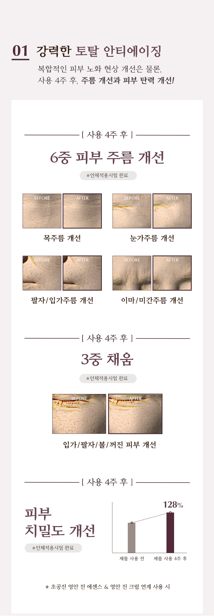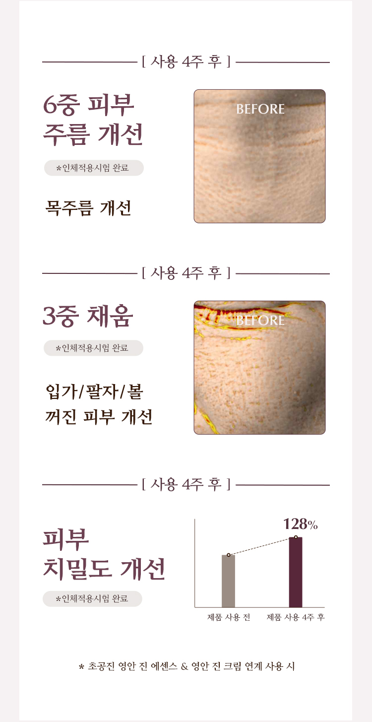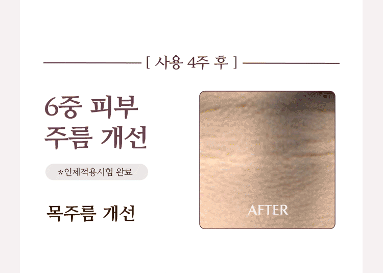 | 식품의약품안전청 심사 필 유무 | 주름개선 & 미백 2중 기능성 화장품 |