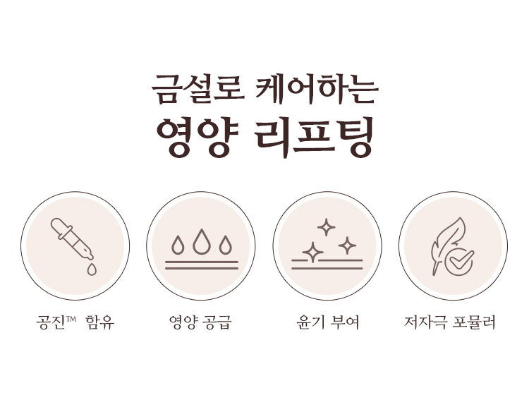 | 사용할 때의 주의사항 | 1. 화장품 사용 시 또는 사용 후 직사광선에 의하여 사용부위가 붉은 반점, 부어오름 또는 가려움증 등의 이상 증상이나 부작용이 있는 경우 전문의 등과 상담할 것 2. 상처가 있는 부위 등에는 사용을 자제할 것 3. 보관 및 취급 시의 주의사항 가. 어린이의 손이 닿지 않는 곳에 보관할 것 나. 직사광선을 피해서 보관할 것 |