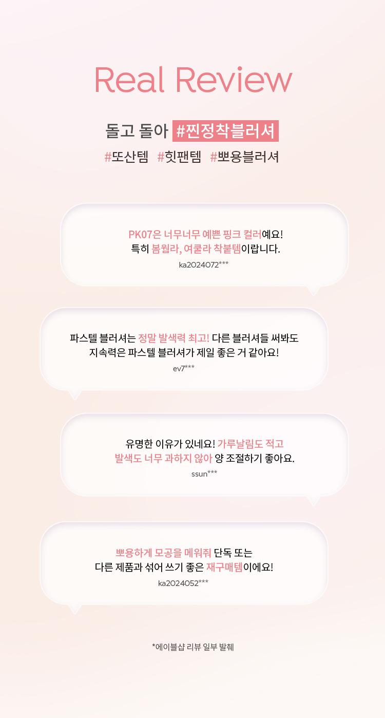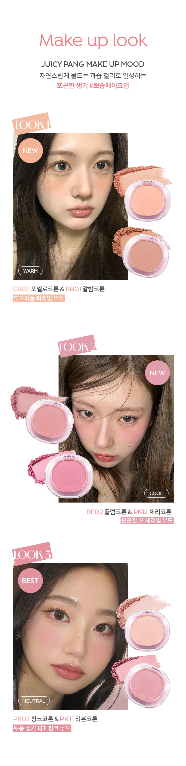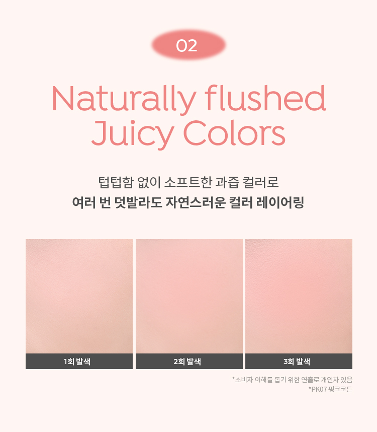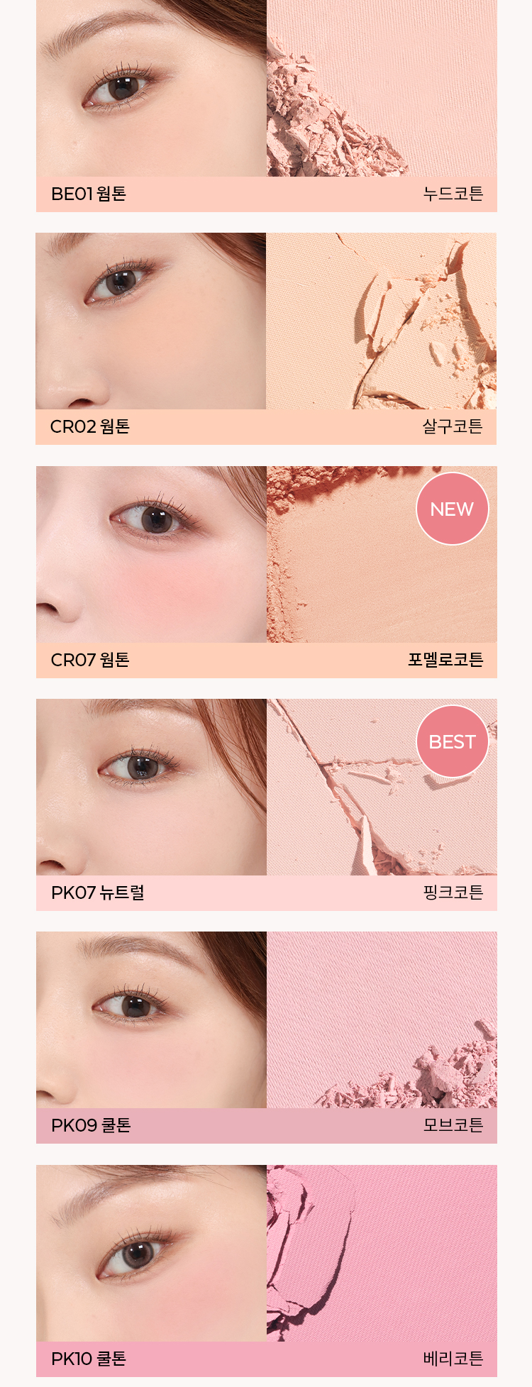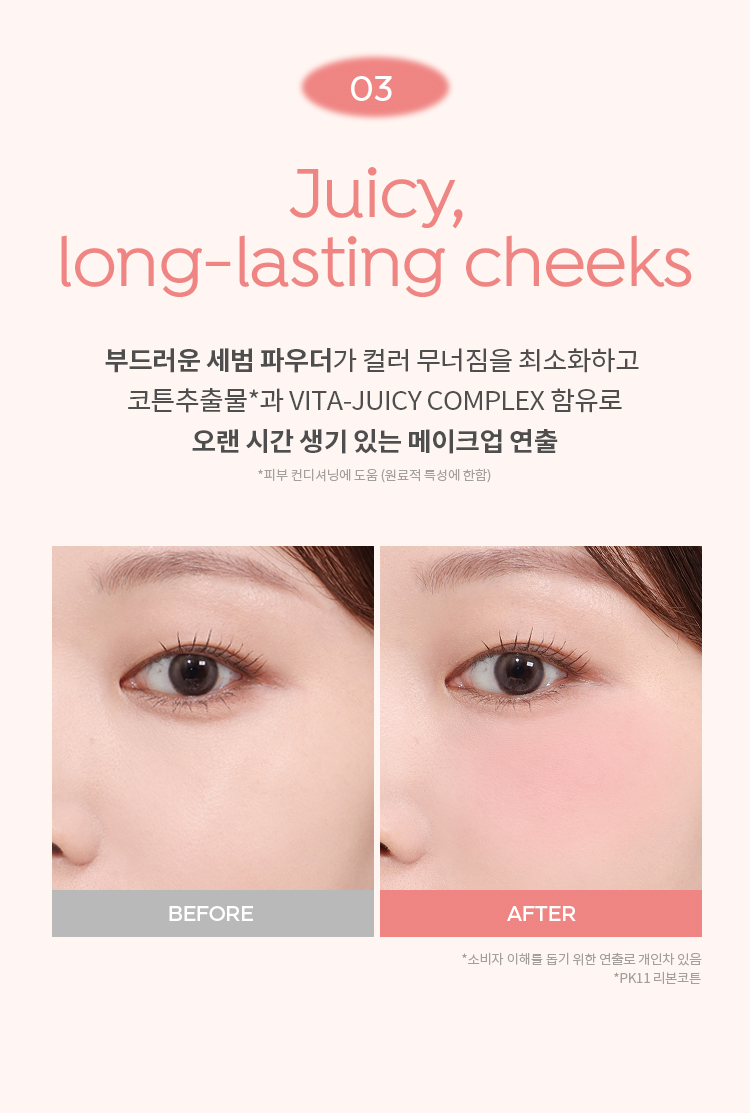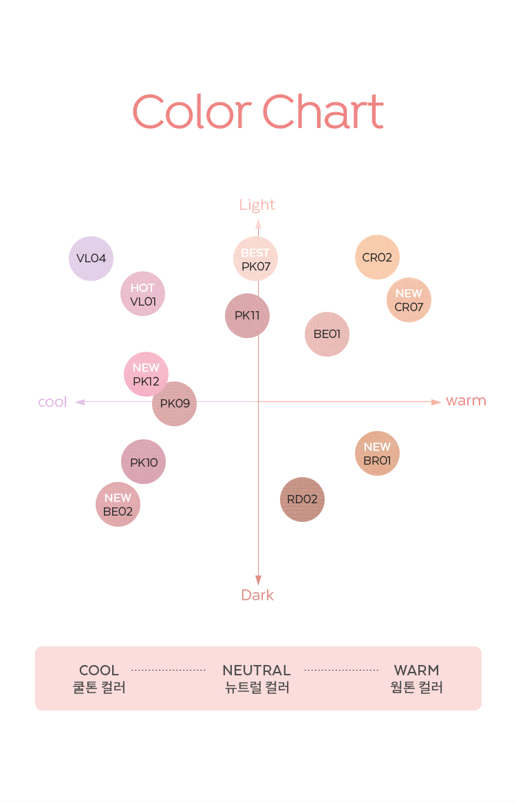 | 전성분 | [BE01] 탤크, 마이카 (CI 77019), 나일론-12, 실리카, 티타늄디옥사이드 (CI 77891), 옥틸도데실스테아로일스테아레이트, 페닐트라이메티콘, 마그네슘스테아레이트, 마그네슘미리스테이트, 마카다미아씨오일, 코튼추출물, 서양자두씨추출물, 라즈베리씨오일/토코페릴석시네이트아미노프로판다이올에스터, 얼룩파인애플추출물, 파파야열매추출물, 레몬추출물, 포도추출물, 망고추출물, 다이메티콘, 다이펜타에리스리틸헥사하이드록시스테아레이트/헥사스테아레이트/헥사로지네이트, 다이아이소스테아릴말레이트, 다이메티콘올스테아레이트, 카프릴릴글라이콜, 글리세릴카프릴레이트, 에틸헥실글리세린, 알루미늄하이드록사이드, 메티콘, 정제수, 토코페롤, 부틸렌글라이콜, 1,2-헥산다이올, 페녹시에탄올, 황색산화철 (CI 77492), 적색산화철 (CI 77491), 울트라마린 (CI 77007), 흑색산화철 (CI 77499), 적색226호 (CI 73360), 황색4호 (CI 19140) [CR02] 탤크, 마이카 (CI 77019), 나일론-12, 실리카, 옥틸도데실스테아로일스테아레이트, 페닐트라이메티콘, 마그네슘스테아레이트, 마그네슘미리스테이트, 마카다미아씨오일, 코튼추출물, 서양자두씨추출물, 라즈베리씨오일/토코페릴석시네이트아미노프로판다이올에스터, 얼룩파인애플추출물, 파파야열매추출물, 레몬추출물, 포도추출물, 망고추출물, 다이메티콘, 다이펜타에리스리틸헥사하이드록시스테아레이트/헥사스테아레이트/헥사로지네이트, 다이아이소스테아릴말레이트, 다이메티콘올스테아레이트, 카프릴릴글라이콜, 글리세릴카프릴레이트, 에틸헥실글리세린, 정제수, 토코페롤, 부틸렌글라이콜, 1,2-헥산다이올, 소듐데하이드로아세테이트, 페녹시에탄올, 황색5호 (CI 15985), 적색산화철 (CI 77491), 황색4호 (CI 19140), 적색226호 (CI 73360), 흑색산화철 (CI 77499) [PK07] 탤크, 마이카 (CI 77019), 티타늄디옥사이드 (CI 77891), 나일론-12, 실리카, 마그네슘미리스테이트, 옥틸도데실스테아로일스테아레이트, 페닐트라이메티콘, 마카다미아씨오일, 코튼추출물, 서양자두씨추출물, 라즈베리씨오일/토코페릴석시네이트아미노프로판다이올에스터, 얼룩파인애플추출물, 파파야열매추출물, 레몬추출물, 포도추출물, 망고추출물, 다이펜타에리스리틸헥사하이드록시스테아레이트/헥사스테아레이트/헥사로지네이트, 다이메티콘, 다이아이소스테아릴말레이트, 카프릴릴글라이콜, 마그네슘스테아레이트, 다이메티콘올스테아레이트, 글리세릴카프릴레이트, 트라이에톡시카프릴릴실레인, 알루미늄하이드록사이드, 라우로일라이신, 에틸헥실글리세린, 정제수, 토코페롤, 부틸렌글라이콜, 1,2-헥산다이올, 페녹시에탄올, 적색산화철 (CI 77491), 울트라마린 (CI 77007), 황색산화철 (CI 77492), 적색226호 (CI 73360), 흑색산화철 (CI 77499) [PK09] 탤크, 마이카 (CI 77019), 나일론-12, 실리카, 옥틸도데실스테아로일스테아레이트, 페닐트라이메티콘, 마그네슘스테아레이트, 티타늄디옥사이드 (CI 77891), 마그네슘미리스테이트, 마카다미아씨오일, 코튼추출물, 서양자두씨추출물, 라즈베리씨오일/토코페릴석시네이트아미노프로판다이올에스터, 얼룩파인애플추출물, 파파야열매추출물, 레몬추출물, 포도추출물, 망고추출물, 다이메티콘, 다이펜타에리스리틸헥사하이드록시스테아레이트/헥사스테아레이트/헥사로지네이트, 다이아이소스테아릴말레이트, 다이메티콘올스테아레이트, 카프릴릴글라이콜, 글리세릴카프릴레이트, 에틸헥실글리세린, 알루미늄하이드록사이드, 메티콘, 정제수, 토코페롤, 부틸렌글라이콜, 1,2-헥산다이올, 페녹시에탄올, 울트라마린 (CI 77007), 적색226호 (CI 73360), 적색산화철 (CI 77491), 흑색산화철 (CI 77499), 황색산화철 (CI 77492), 황색4호 (CI 19140) [PK10] 탤크, 마이카 (CI 77019), 나일론-12, 실리카, 옥틸도데실스테아로일스테아레이트, 페닐트라이메티콘, 마그네슘스테아레이트, 마그네슘미리스테이트, 마카다미아씨오일, 코튼추출물, 서양자두씨추출물, 라즈베리씨오일/토코페릴석시네이트아미노프로판다이올에스터, 얼룩파인애플추출물, 파파야열매추출물, 레몬추출물, 포도추출물, 망고추출물, 다이메티콘, 다이펜타에리스리틸헥사하이드록시스테아레이트/헥사스테아레이트/헥사로지네이트, 다이아이소스테아릴말레이트, 다이메티콘올스테아레이트, 카프릴릴글라이콜, 글리세릴카프릴레이트, 에틸헥실글리세린, 알루미늄하이드록사이드, 메티콘, 카올린, 정제수, 토코페롤, 부틸렌글라이콜, 1,2-헥산다이올, 페녹시에탄올, 티타늄디옥사이드 (CI 77891), 적색226호 (CI 73360), 울트라마린 (CI 77007), 흑색산화철 (CI 77499), 망가니즈바이올렛 (CI 77742), 적색산화철 (CI 77491), 황색4호 (CI 19140) [PK11] 탤크, 마이카 (CI 77019), 나일론-12, 실리카, 옥틸도데실스테아로일스테아레이트, 페닐트라이메티콘, 마그네슘스테아레이트, 마그네슘미리스테이트, 마카다미아씨오일, 코튼추출물, 서양자두씨추출물, 라즈베리씨오일/토코페릴석시네이트아미노프로판다이올에스터, 얼룩파인애플추출물, 파파야열매추출물, 레몬추출물, 포도추출물, 망고추출물, 다이메티콘, 다이펜타에리스리틸헥사하이드록시스테아레이트/헥사스테아